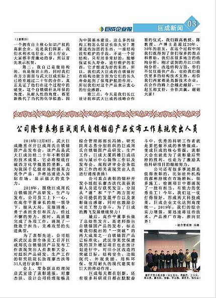 公司隆重表彰SG胜游周氏自锁锚固产品发布工作表现突出人员