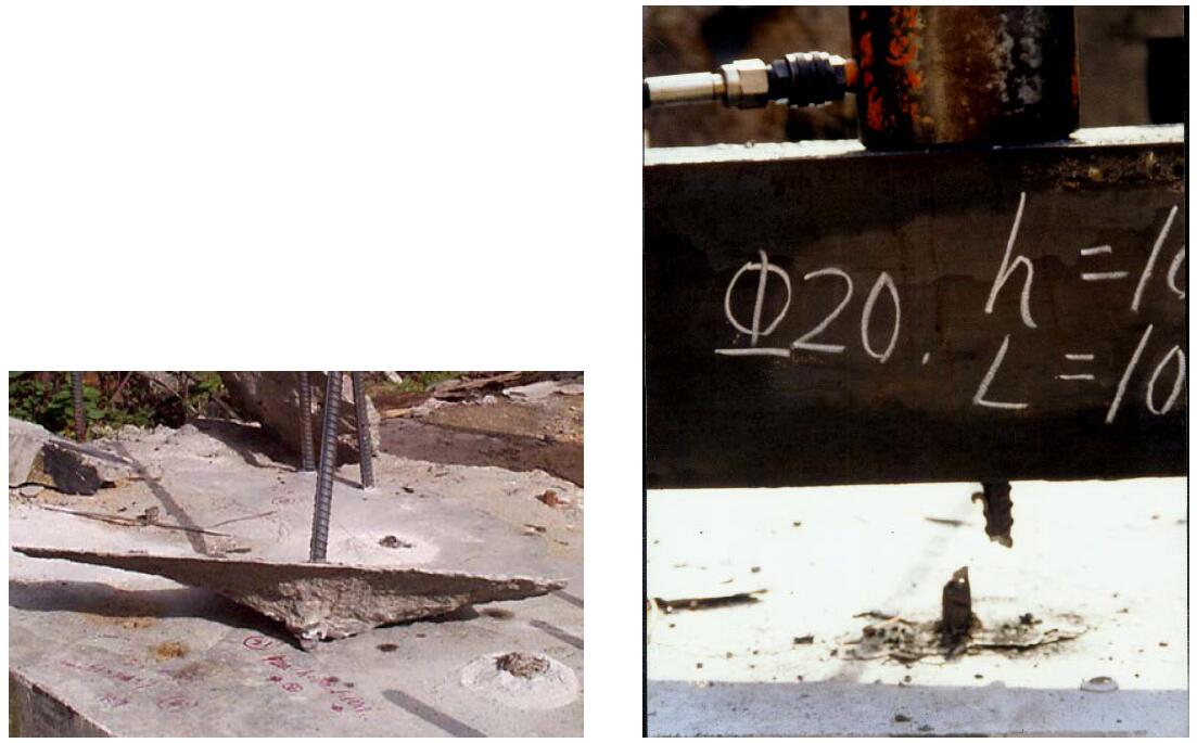 (1)混凝土锥形破坏面 (2)锚杆拔断