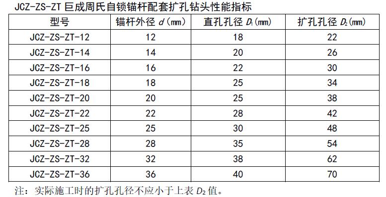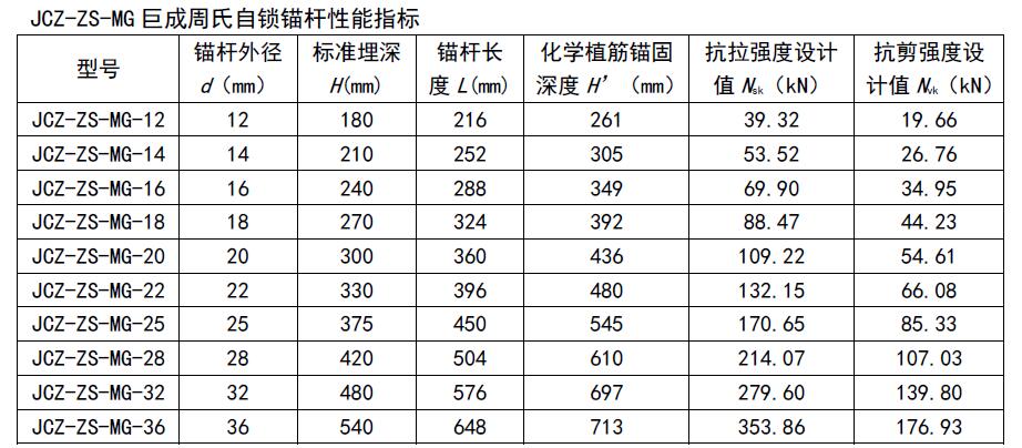 注:1.本表适用于C30混凝土基材,其余强度混凝土可按《岩石与混凝土自锁锚固技术规程》(DB42/T-2018)中相关公式条文计算得出;