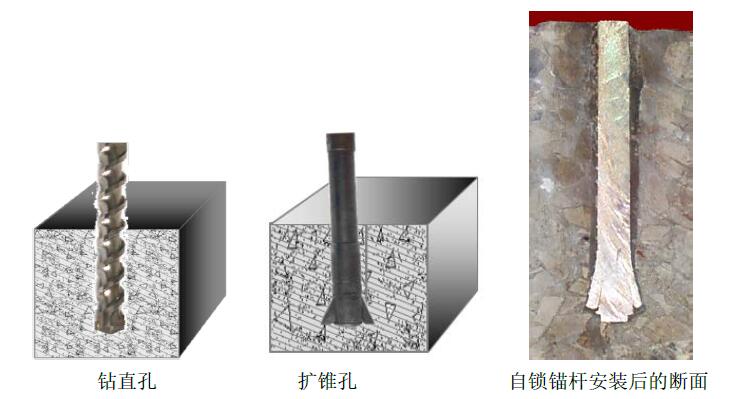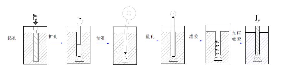 锚固原理:利用内锚头扩大后与孔壁的机械咬合力和锚杆直线段注浆后的沿程摩阻力来提供锚固力 。