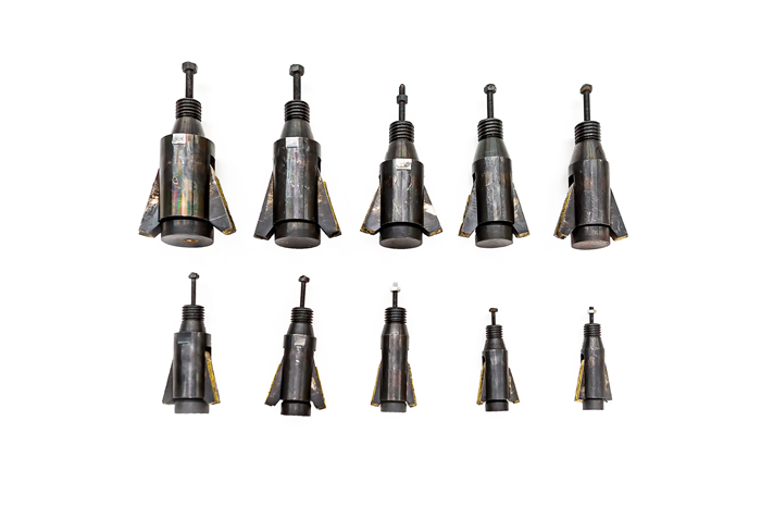 JCZSG胜游周氏自锁锚固产品(专利号:ZL200910272493.3 发明专利)的核心部分是扩孔自锁锚杆。扩孔自锁锚杆的施工工艺和锚固原理是:将基材(岩石或混凝土)上所钻的直孔底部,用特制的扩孔钻头扩成倒锥面或正锥面,然后将一端安装有未张开锚头的锚杆插至孔底,轴向加压使锚头张开与孔底锥面贴紧,利用锚头与孔壁的机械咬合力(即“自锁”)和锚杆锚固段注胶(浆)后的沿程摩阻力来提供锚固力。