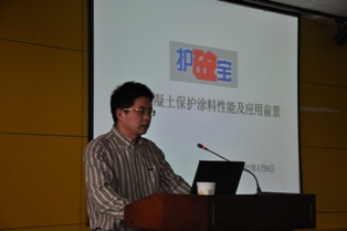 材料厂厂长万雄卫高工介绍“护砼宝清水混凝土保护涂料的性能及应用前景”。