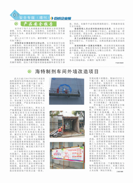 海特项目是一个建筑物防水与装饰改造的综合项目,高空作业面较大,存在一定的安全隐患,但在施工团队每个成员的共同努力下,到目前为止未出现一例安全事故。该项目正处于收尾阶段,不能放松思想,纪律松弛,杜绝违章,加强安全巡检直至项目结束。